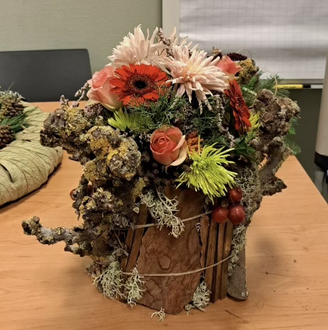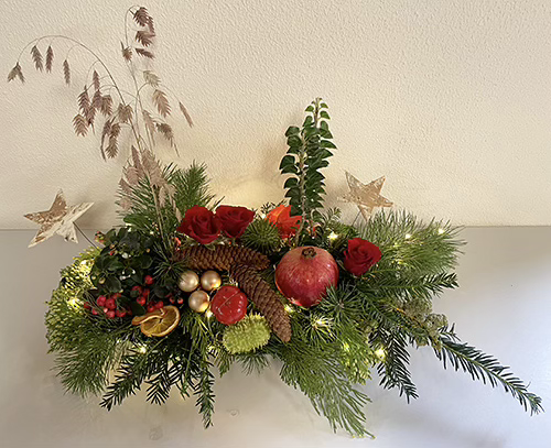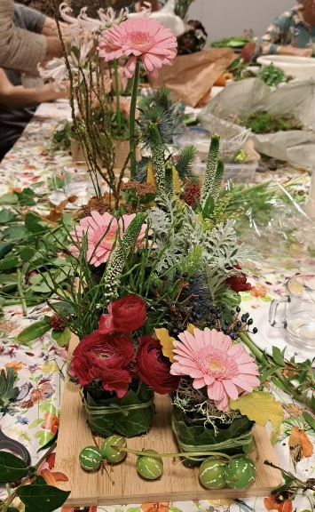 Resultaten van afgelopen november. 2 Prachtige werkstukken van deelnemers. Die middelste foto had ik beter ook even vanaf de effen tafel kunnen maken. Die vond ik persoonlijk erg mijn stijl. Roze, luchtig en schattig! Het robuuste stuk van de hand van Ellie is ook kei-mooi en zeer stoer. Beide stukken zijn in het echt nog veel mooier dan deze foto’s laten zien! Bloemschikken in de Berchplaets. De volgende workshop is op woensdagavond 10 december van 19.30 tot 21.30 uur. (Gratis parkeren, wel druk trouwens!) Kosten voor een losse les zijn € 10,- voor leden en € 12,50 voor niet-leden. Zelf zorg je voor de verschillende materialen, waardoor ieder werkstuk een individuele look krijgt. Heel binnenkort vind je op de website een overzicht van de benodigde materialen voor de bloemstukken van december. Overigens staan de oude bloemstukken met materialenoverzicht er ook nog op, mocht je je geïnspireerd voelen! Mocht je belangstelling hebben maar twijfel je nog: kom gerust een keer kijken of vraag een proefles aan bij Annette of Mariëlle via de website. Meer info en aanmelding op de website Maandelijks bloemschikken seizoen 2025-2026 De data voor 2025/2026 zijn: