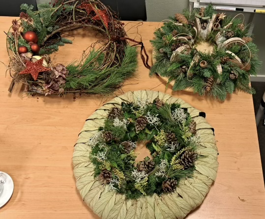 Verder is op woensdag 10 december a.s. weer bloemschikken in de Berchplaets. Ik ben afgelopen keer even wezen kijken en dat was een gezellige en ijverige bedoening. Er waren hele verschillende werkstukken aan het ontstaan, omdat er altijd 2 verschillende voorbeelden staan en iedereen voor zijn eigen bloemen zorgt. Nu voor december staan er zelfs 3 kerstkransen op het programma. En die derde staat nog niet vermeld op de site, maar ik kan je zeggen dat dat niet zomaar de geëikte kerstkrans is, nee die sprong er voor mij echt uit qua opzet!
