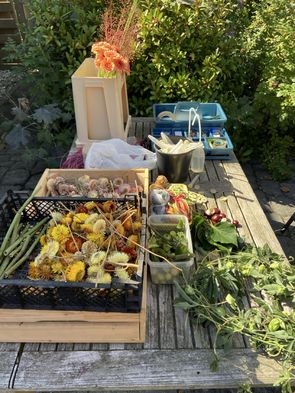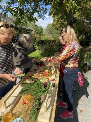 Op 12 september in de middag was het zover: we mochten weer bij Sjaak in de tuin komen bloemschikken. Zoals altijd werden we hartelijk ontvangen met een kopje koffie of thee en natuurlijk een lekker koekje.