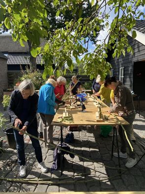 Aan het einde van de middag stonden de tafels vol met prachtige, unieke creaties. Iedereen had er echt iets eigens van gemaakt. We sloten af met een gezellig samenzijn, waarbij er nog volop werd nagepraat en bewonderd. Het was een geslaagde middag vol creativiteit, gezelligheid en een vleugje zonneschijn.
